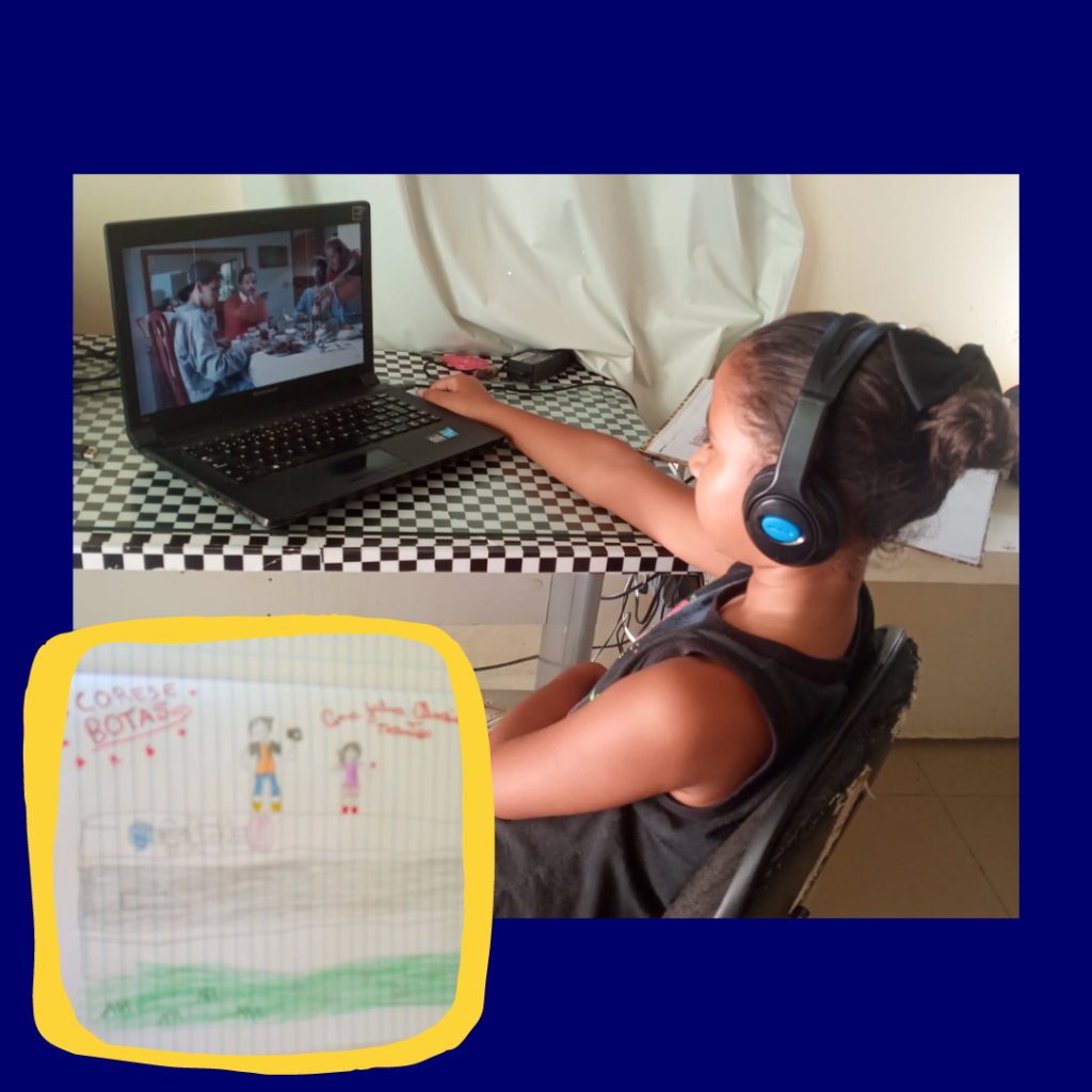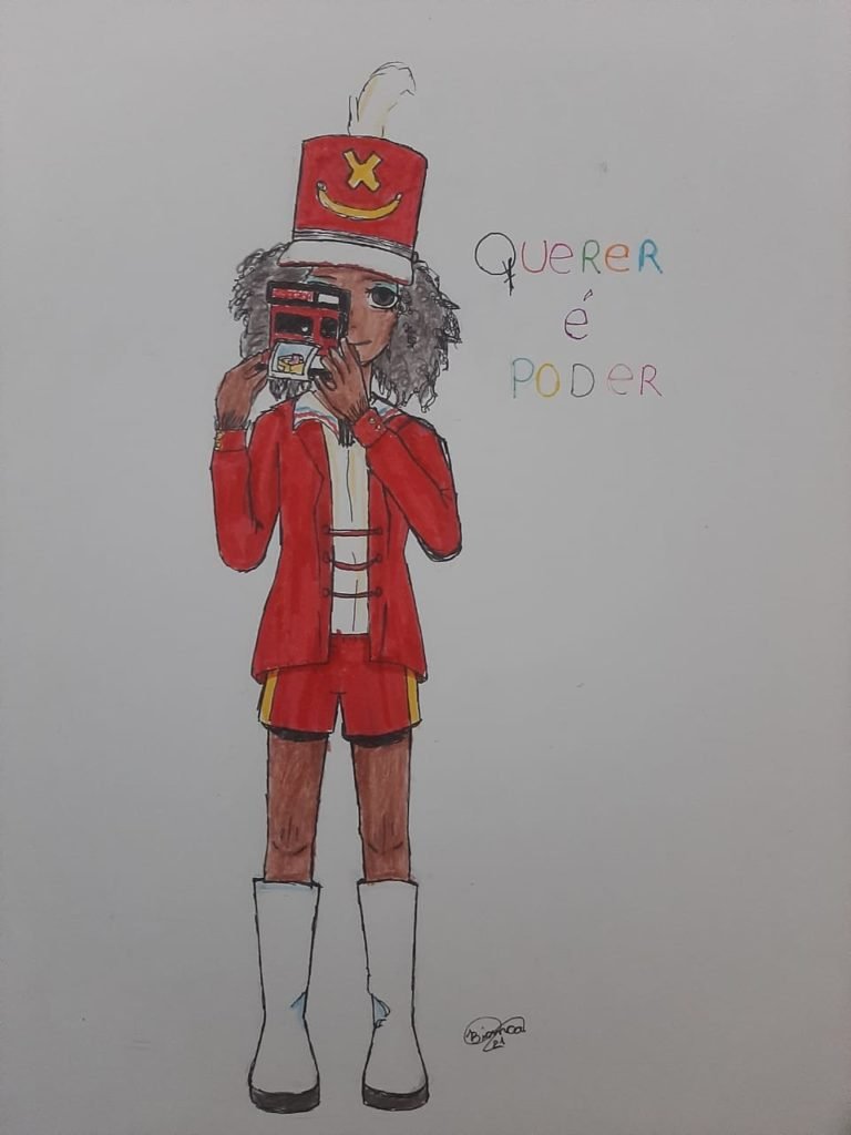 "Cores e botas, achei muito legal o jeito em que eles remetiam que estavam nos anos 80 Como mostrar acontecimentos e a moda da epoca, eu esperava muito que Joana fosse escolhida, mas infelizmente não foi, por causa de seu tom de pele, fiquei indignada e triste porque isso obviamente acontece ainda nos dias de hoje, mas fiquei imensamente feliz quando Joana decidiu ser fotógrafa, tendo um novo sonho e remetendo a mim que eu posso ser tudo, basta eu querer e tentar várias e várias vezes". Relato e desenho de Bianca sobre o filme Cores e Botas, de Juliana Vicente .